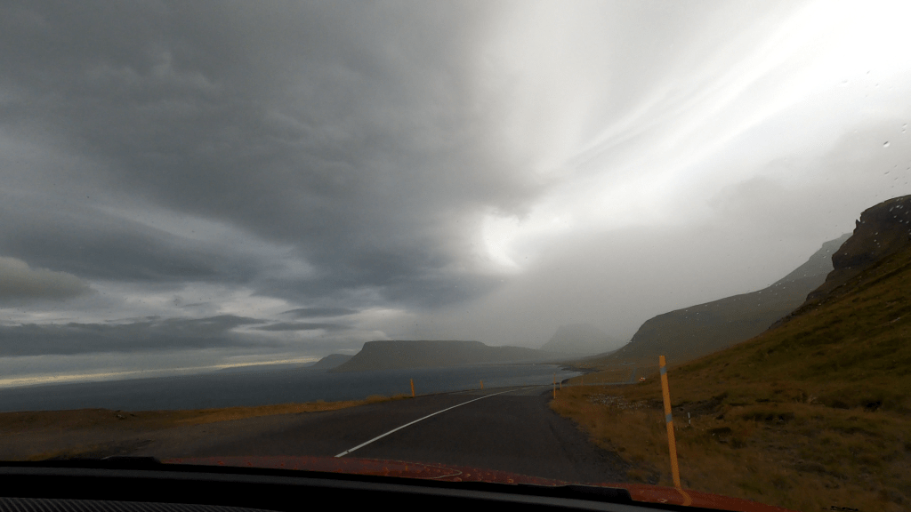 Wir sind dann relativ zügig wieder zurück zum Auto und haben den „Heimweg“ ins Hotel angetreten. Dabei wurde das Wetter dann noch ein wenig schlechter und zeitweilig musste man sich schon Sorgen machen, ob hier gleich die ganze Insel untergeht. Spoiler – Island ist nicht untergegangen.