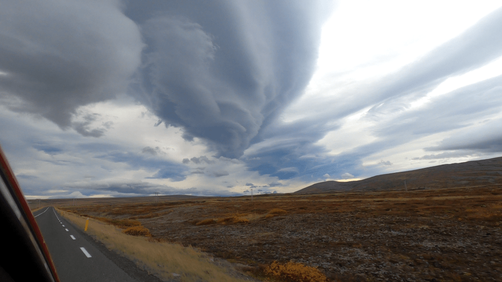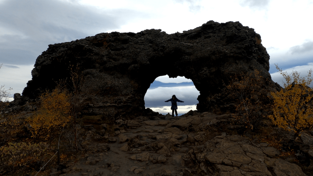 Positiv betrachtet hatten wir heute gar nicht soviel Sightseeing geplant. Denn auf dem Programm stand, dass wir unsere Isländisch-Lehrerin besuchen. So ganz ohne Touri-Erlebnis geht es aber natürlich dann doch nicht. Wir fuhren unter einem durchaus spannendem Himmel in Richtung Dimmuborgir. Klar, es sind am Ende nur Wolken. Ich würde jedoch behaupten, dass die sich in Island anders verhalten als im guten alten Berlin. Es ist, als ob die sich viel sichtbarer auftürmen. Es geht regelrecht eine Bedrohlichkeit von ihnen aus. Hübsch anzusehen sind sie dabei aber auch.