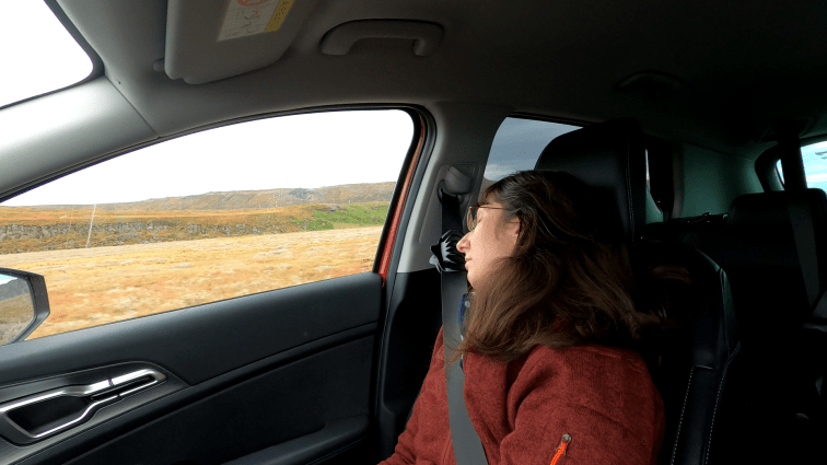Zu Beginn war die Straße recht normal. Der übliche Schotter-Schlagloch-Mix, der uns spätestens seit den Westfjorden rein gar nicht mehr juckt. Nach ein paar Minuten Fahrt, kamen wir zu einer Sehenswürdigkeit. Am Straßenrand führte ein unscheinbarer Weg in Richtung Küste. Der Weg hörte gute 50m vor dem Atlantik auf. Wenn man sich dann umdrehte, sah man einen Wasserfall.