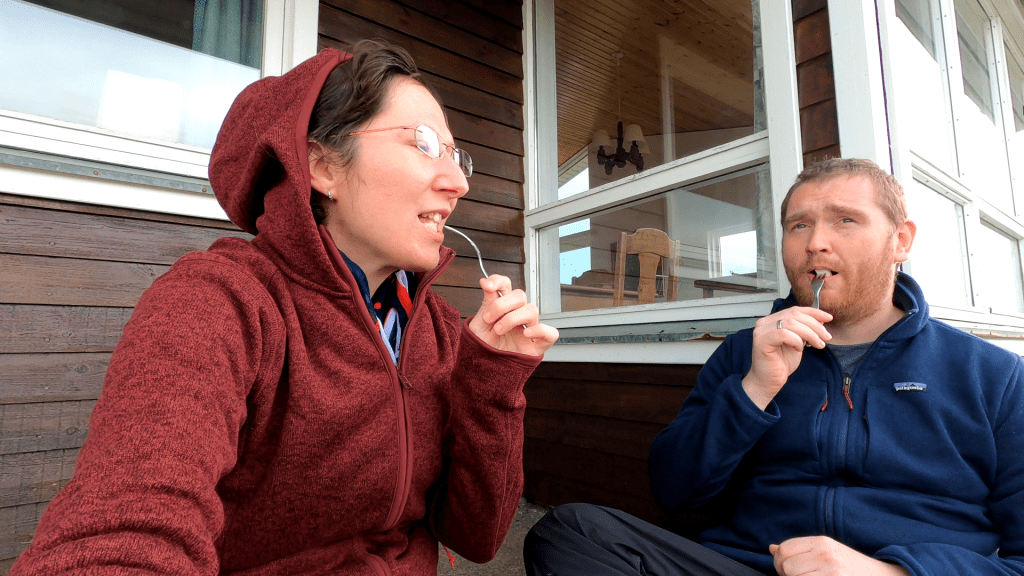 Die Rezeption hat uns im gleichen Atemzug darauf hingewiesen, dass man für diesen Fall auch noch länger ein Zimmer für uns hätte. Insofern wäre das Drama halbwegs überschaubar. Aktuell sagt der Wetterbericht, dass Regen und Schnee zwischen 9 und 11 Uhr hier einsetzen sollen. Wir werden daher morgen versuchen möglichst früh aufzubrechen. Während ich das schreibe, pfeifft hier übrigens der Wind durch das geschlossene Fenster… mal schauen, wie wir schlafen werden.