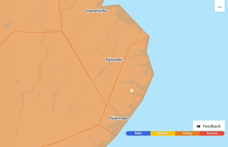 Dazu kommt, dass zu morgen die Temperatur stürzen soll. Von heute 15 bis 18°C soll es morgen auf 0 bis -1°C runter gehen. Und da Isländer für gewöhnlich wissen, wenn ihr Land freidreht, sperren sie sicherheitshalber lieber jene Straßen, die am schlimmsten betroffen sind – wie eben die eine, die hier rein/rausgeht. Damit würden wir dann festsitzen.