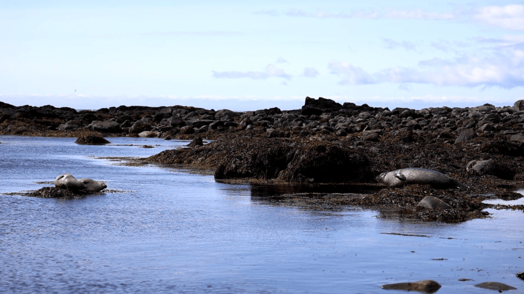 Doch dann geschah es. Es platschte etwas im Wasser. Ein Robbenkopf kam hervor und scannte die Umgebung. Offensichtlich wirken wir nicht bedrohlich, denn kurz danach kamen ein paar seiner Freunde dazu. Und während ein paar Robben keine 50m von uns entfernt spielten, hatten ein paar andere die Idee, dass sie schon immer mal auf einem Stein liegen wollten. Warum auch nicht? Die Sonne kam raus und der Wind macht einem Tier, was bei 2°C Wassertemperatur Spaß hat, wohl eher nichts aus.