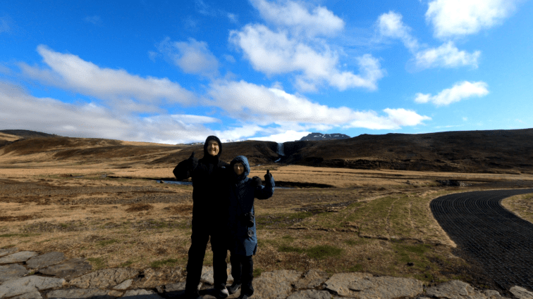 Der Robbenstrand war ein voller Erfolg. Nicht nur, dass wir Robben gesehen haben, mittlerweile schien die Sonne. Gut, es war sehr windig – aber irgendwas ist ja immer. Wir sind mit dem Glücksgefühl über das Erlebte zurück ins Auto und weiter zum Bjarnafoss.