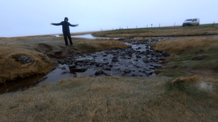 Wenn man sich das Bild genauer anschaut, stellt man fest, dass Kamera und ich auf unterschiedlichen Seiten des Flusses stehen. Ich bin daher noch mal zurück – wieder erfolgreich – wollte ja aber eigentlich wirklich rüber und war damit an dieser Stelle 3x erfolgreich über Wasser gelaufen. Nimm das Jesus!