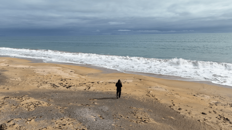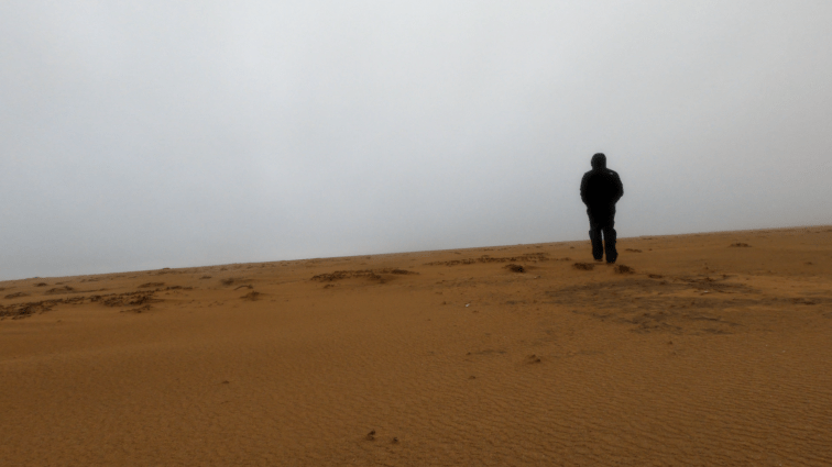 Als ich am Parkplatz des Strands ankam, war das Meer zwar zu hören aber nicht zu sehen. Die berühmten Tafelberge, die keine 100m weit weg stehen, waren ebenfalls kaum bis gar nicht sichtbar. Und dann kam da auch noch das nächste Problem. Ich habe so gar keine Balance und vor mir tauchte ein Minifluss mit lauter lockeren Steinen auf. Zugegeben, die Stelle gab es letztes Jahr schon – aber auch da fand ich die schon blöd. Aber was will man machen? Der Tag läuft bisweilen nicht für mich – da kann man auch gleich mal rausfinden, ob er gänzlich gegen mich ist. Ich nahm meinen Mut zusammen und ging beinahe mühelos über die Steine.