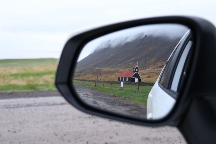 Ich bin nach einer kleinen Ewigkeit dann zurück zum Auto und zu einer naheliegenden schwarzen Kirche gefahren. An dieser Stelle möchte ich euch meinen persönlichen Trend des Spiegel-Bildes zeigen. Aus irgendeinem Grund parke ich gerade gern so, dass im Spiegel so manch ein Objekt sehr ansehnlich daherkommt. Dazu gesellt sich da ein Spiel mit dem Fokus oder Bildschärfe (was auch immer der Fachbegriff ist) et voila – mir gefällts.