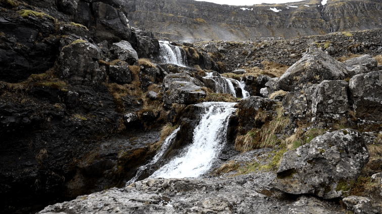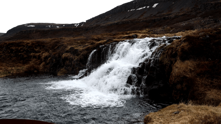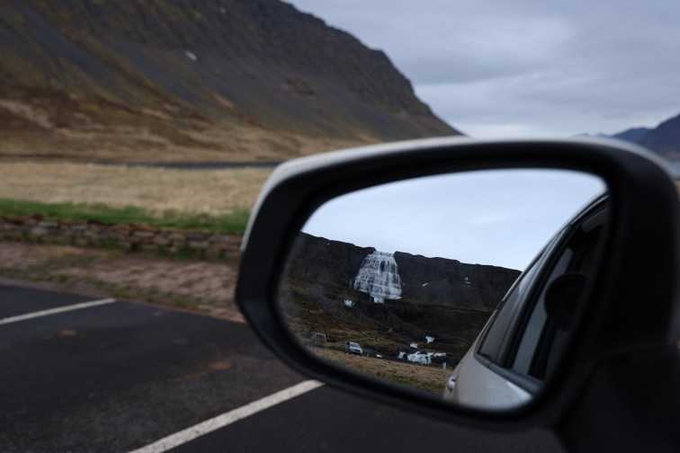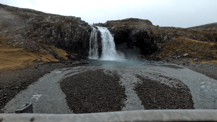 Nach gut 1,5h kamen wir dann beim Dynjandi und seinem „Walking Trail“ an. Nach einer sehr rauen Straße steht man hier an einem Punkt, der mich zur Demut zwang. Denn während wir hier die schroffe Natur mit allen Ecken und Kanten genießen und aufsaugen können, war vor dem Dynjandi die Idee des Tourismus sichtbar geworden. Da gab es Parkplätze für Elektroautos, Toilettenhäuschen und Picknick-Tische mit Bänken. Es fügt sich alles in ein Gesamtbild und geht schon in Ordnung. Trotzdem darf man wohl vermuten, dass die Entwicklung in Island immer mehr in diese Richtung geht. Eines Tages wird man dann nicht mehr auf matschigen Straßen seinem Ziel entgegen schliddern. Stattdessen vermute ich: Reisegruppen die einem Einheimischen folgen, welcher einen Schirm in der Hand. Der Entdeckergeist dürfte so nach und nach aussterben. So gesehen, haben wir gerade trotz all der Umstände einen guten Urlaub.