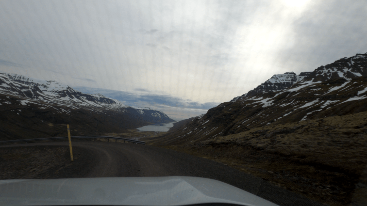 Die Straße war indes sehr gut geräumt. Trotzdem ist das eine abgeschiedene Ecke, selbst für isländische Verhältnisse und der Weg dementsprechend holprig. Mir macht so eine Fahrt sogar Spaß. Wenn das Auto schunkelt und man Slalom um die Schlaglöcher fährt, da schlägt mein Autofahrerherz höher. Vor allem lohnt sich so eine Fahrt in Island quasi immer.