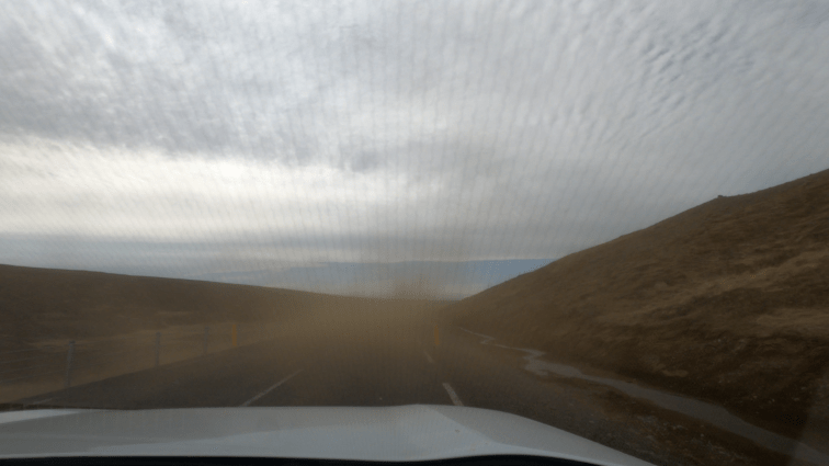 Ein weiterer Vorteil unserer Seite war, das wir dann relativ schnell flüchten konnten. Der seit Tagen dominierende Wind hat sich überlegt, zu einem ausgereiftem Sandsturm zu mutieren. Das ist einerseits sehr unangenehm wenn man draußen ist, andererseits macht es so eine Autofahrt schlagartig viel abenteuerlicher.