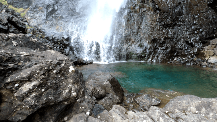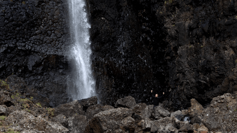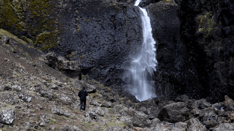 Der Wasserfall ist weder sonderlich hoch noch für isländische Verhältnisse übermäßig spektakulär. Für den Entdecker in mir, war jedoch der Weg dorthin schon sehr toll. Auf einem Trampelpfad wollten ein paar größere- und ein paar kleinere Steine überwunden werden.