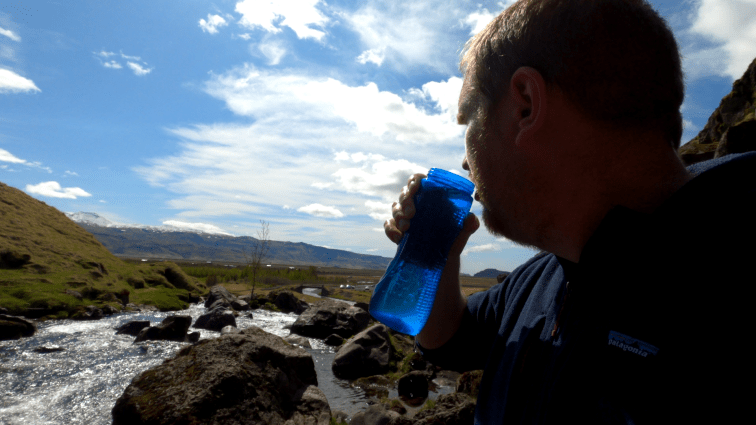 Als ich irgendwann wieder bergab ging, durfte ich feststellen, dass es zwar nur 11°C sind aber durch die Bewegung und die Sonne wird einem gehörig warm. Gleichzeitig war meine Wasserflasche leer. Kurzentschlossen ging es damit noch mal direkt an den Wasserfall und die Trinkflasche wurde gefüllt. Ich habe dann über den Tag Wasser direkt aus dem Gluggafoss genießen können. Es ist eiskalt und glasklar und ich behaupte jetzt einfach mal, dass es das beste Wasser ist, was ich je hatte.