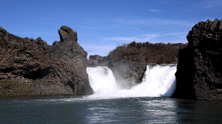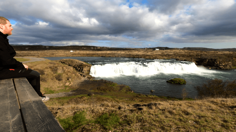 Nach einer guten Stunde Fahrt kamen wir zum Hjálparfoss. Es ist ein Wasserfall, den wir von unserer allerersten Tour kennen. Damals fuhr man noch auf einer zerrupften Schotterpiste und landete dann im Nirgendwo bei diesem schönem Wasserfall. Heute fährt man eine ausgebaute Straße und folgt dann einem ebenem Wanderweg zu einem Aussichtspunkt. Den Wasserfall selbst macht das natürlich nicht hässlich. Der Charme des Erkundens ist aber natürlich schon ein wenig verloren gegangen.