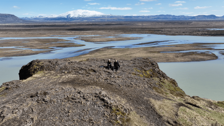 Außerdem wusste ich ja, dass ich gleich noch mal fliegen kann. Wir fuhren nämlich noch an einem Berg mit dem illustren Namen Stóra-Dímon vorbei. Genau genommen heißt der daneben liegende Fluss wohl auch so. Im letzten Jahr war dies der Ort, wo ich beinahe meine Drohne verloren hätte. Nach einem kurzen Flug brachen alle Signale ab und ich befürchtete das Schlimmste. Sie kam nach einigen Augenblicken dann wieder zu mir zurück. Ich war also heute gewarnt, dass es hier mitunter Störungen geben kann.