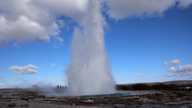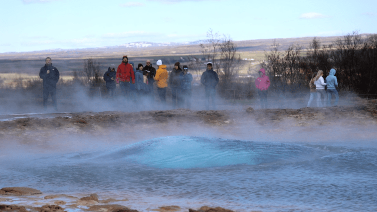 Als nächstes auf der Agenda stand der Strokkur. Die alten Bloghasen wissen, dass der Strokkur und ich eine sehr innige Liebesbeziehung führen. Der Strokkur ist der kleinere Geysir neben dem… naja… großen Geysir. Allerdings ist der Strokkur im Gegensatz zum großen Geysir noch sehr aktiv und spuckt alle paar Minuten eine Fontäne in die Luft.