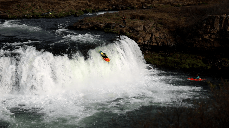 Unser letzter Halt war der Faxi-Foss. Wieder ein Wasserfall aber hier muss man sagen, war das Highlight von Menschen gemacht. Als wir ankamen wir es nämlich so, dass gerade zwei Kayakfahrer dort unterwegs waren. Einer war noch oben beim Wasserfall, der andere wartete bereits unten.