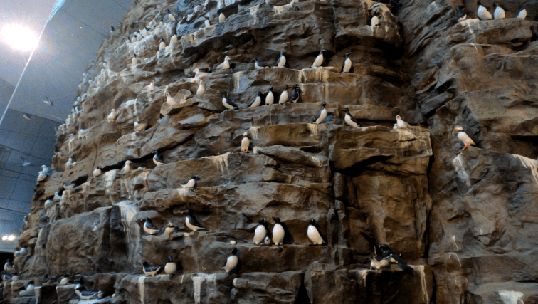 Aber auch mit Blick auf die Museen sind wir auf den Geschmack gekommen. Unser Weg führte zum vielleicht bekanntesten Museum in Reykjavik – dem Perlan. Hier findet man gleich mehrere Dinge. Zum einen gibt es einen Ausstellung über die Naturgewalten Islands. Des weiteren gibt es ein paar ausgestopfte Tiere, eine Lava-Show, einen Nachbau der Vogelwand des Látrabjarg, eine Eishöhle und ein Planetarium. Ihr seht schon – wenn Kultur – dann richtig!
