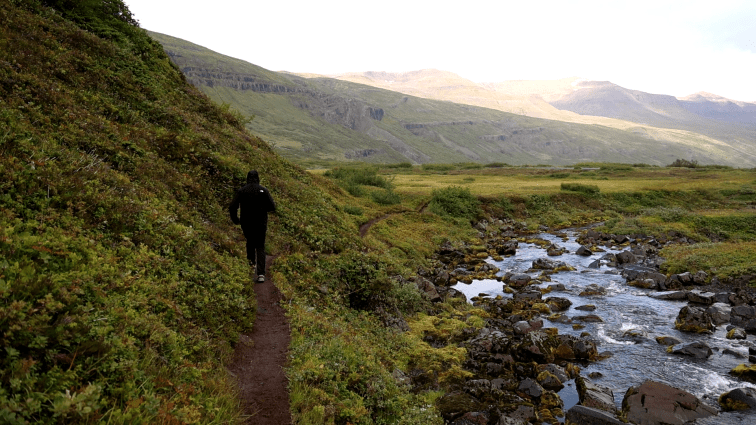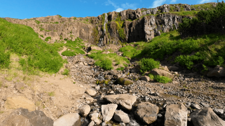 Hierhin verirrt sich kein Reisebus. Wer den Weg hierher antritt, weiß, dass ihn im Grunde nichts erwartet, außer friedlicher Natur. Die meisten Wasserfälle hier, haben weder Parkplätze noch einen irgendwie nutzbaren Zugang, um davor Fotos zu machen. Was es gibt, ist der Klifbrekkurfossar. Allerdings muss auch hier erstmal hinkommen. Es geht über einen kleinen Fluss und dann einen Weg entlang, wo keine zwei Menschen – in meinem Fall nicht mal zwei Beine – nebeneinander stehen können. Wenn man es trotzdem durchzieht, steht man für eine Weile im Paradies.
