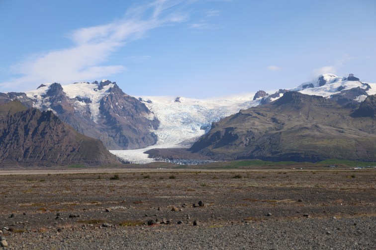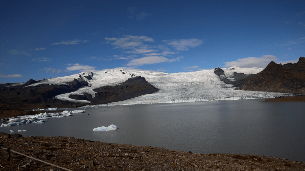 Beim Fjallsárlón gibt es eine Art Besucherzentrum und einen Rundweg. Der Parkplatz war schon recht voll und wir ahnten schlimmes. Doch aus Gründen gingen wirklich alle Menschen nach links auf den Weg. Wir dagegen sind rechts entlang. Wir fanden eine kleine Bank und die Aussicht von dieser seht ihr auf dem Bild hierdrüber. Wir verweilten eine Weile, genossen die Stille und fuhren dann weiter zum nächsten Gletscher.