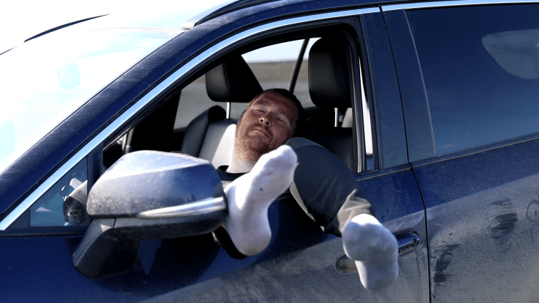 …während ich die Grenzen von Gemütlichkeit des Fahrersitzes auslotete. Es ist vermutlich ein Segen, dass ich relativ wenig Muskeln habe. Fettgewebe ist augenscheinlich viel variabler in der Positionierung und so konnte ich die Füße draußen vom Wind kühlen während der Rest ergonomisch-fragwürdig im Sitz drapiert ruhte.
