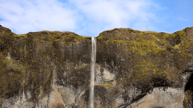 Weitere 20 Minuten später gab es noch einen Wasserfall, bei dem ich sogar wieder mit der Drohne fliegen konnte. Hier ballerte uns mittlerweile die Sonne richtig entgegen. In kurzer Hose und T-Shirt standen wir da. Für uns natürlich schön, für Island vielleicht schon ein bisschen zu heiß. Einmal mehr muss leider erwähnt sein, dass der Wasserfall auch deutlich weniger Wasser führte, als noch im Mai.