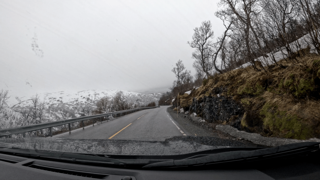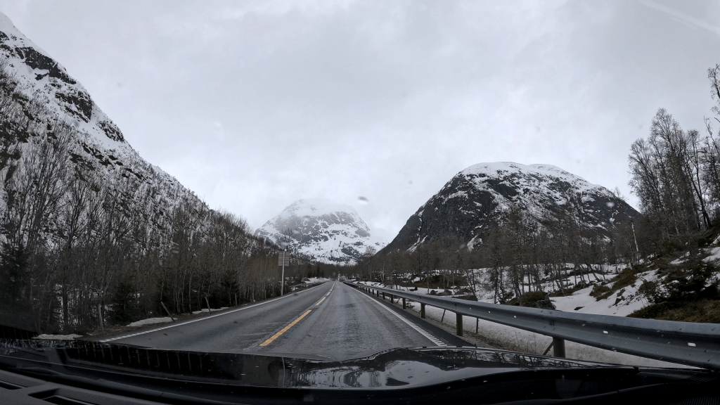 Offen gesprochen dachte ich zu dem Zeitpunkt, dass der Tag nun weiter im satten Grün und geprägt von Wasserfällen weitergehen wird. Doch Norwegen hatte andere Pläne. Es dauerte keine halbe Stunde und uns wurde sehr glaubhaft versichert, dass wir heute noch nicht mit dem Thema Schnee durch sind.