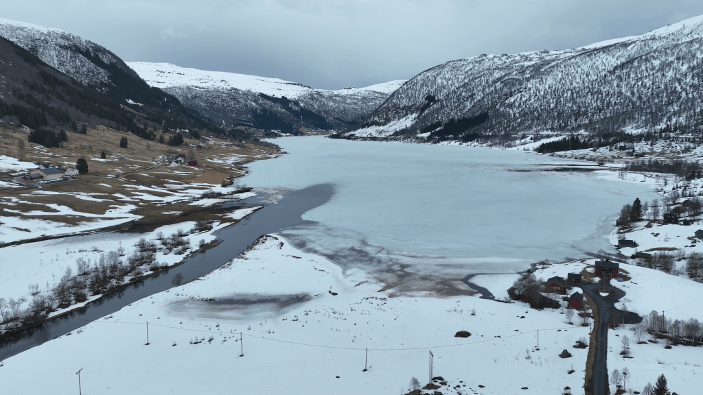 Immerhin ergab sich dabei dann aber mal die Gelegenheit, dass ich meine Drohne auspacke und einen halbeingefrorenen See knipse. Hatten wir so ja auch noch nie.