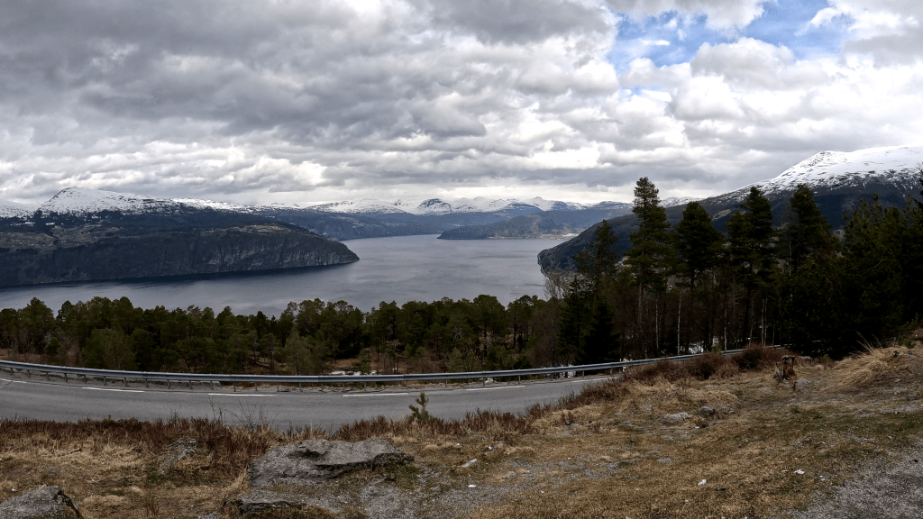 Ich kann leider immer noch nicht genau sagen, wo wir dann eigentlich langgefahren sind und wo genau wir am Ende standen. Was ich jedoch berichten kann ist, dass es wieder den Blick in einen Fjord gab und wieder war es wunderschön.