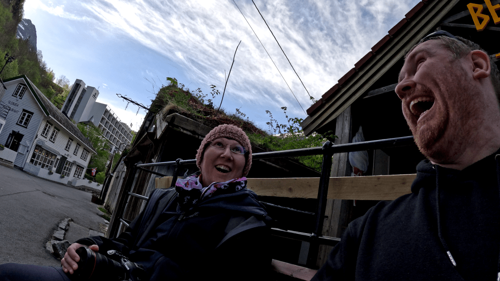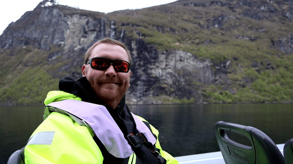 Eben, und weil wir heute Morgen nach ein wenig hadern doch den Entschluss gefasst hatten, dass wir mal mit einem Speedboot durch den Geiranger fahren wollen, saßen wir um kurz nach 9 Uhr mit folgendem Gesichtsausdruck in Geiranger.