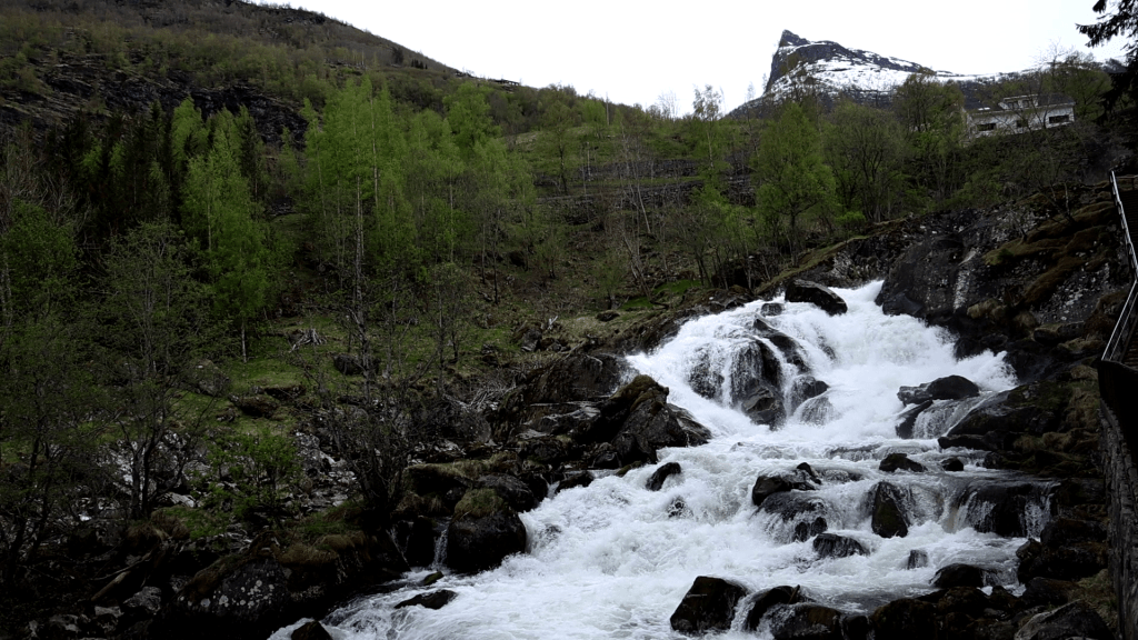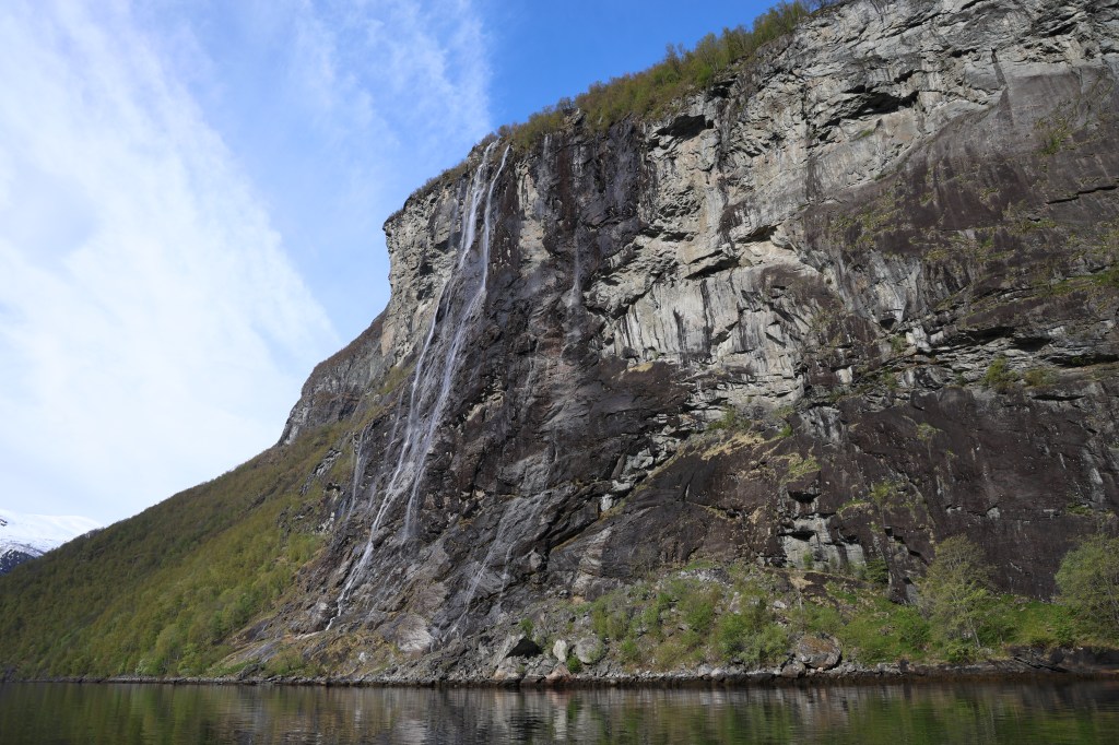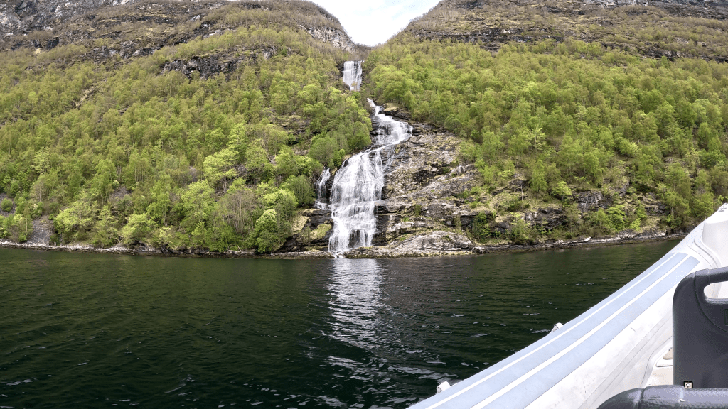 Wir gingen dann den hiesigen Wasserfall-Trail entlang. Dieser geht passenderweise direkt an unserem Hotel entlang und führt bis an den Strand oder wahlweise in die Innenstadt von Geiranger.