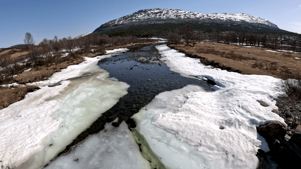 Da meine Drohne zwischen den Bergen aber keine allzu weiten Flüge erlaubte (Signalabbrüche yay), fuhren wir bald weiter. Auch am nächsten Rastplatz sollte es dann einen eisigen eingeschneiten Fluss geben.
