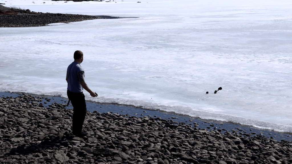 Und während meine Frau wieder mal Profifotos machte, sammelte ich Steine, um sie dann anschließend aufs Eis zu werfen. Ich erwarte nicht, dass meine Begeisterung hierfür geteilt wird. Aber ich hatte schon sehr viel Spaß daran.
