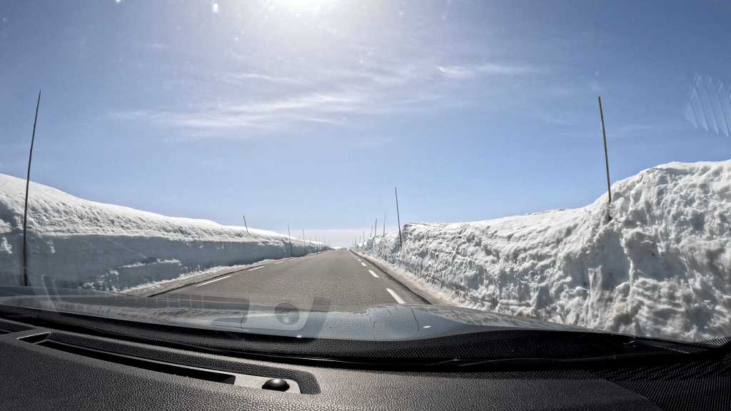 Im Anschluss erlebte ich hautnah, wie sich eine Fahrt durch ein norwegisches Skigebiet anfühlt. Die Straßen waren im Grunde tip top. Links und rechts war aber teilweise 3-4m hoch eine Wand aus Schnee.