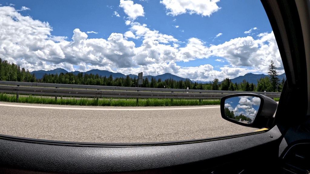 Wir können an dieser Stelle festhalten, dass Fußballfans aber scheinbar per se gute Autofahrer sind. Denn trotz verhältnismäßig viel Verkehr, flutschte die Fahrt nur so vor sich hin. Und auf einmal, ist man dann hinter München. Kurz vor Garmisch hatte ich meinen ersten „Stau“. Genauer gesagt, stand ich nicht mal 2 Minuten. Es hat aber gereicht, um die Landschaft mal kurz medial festzuhalten.