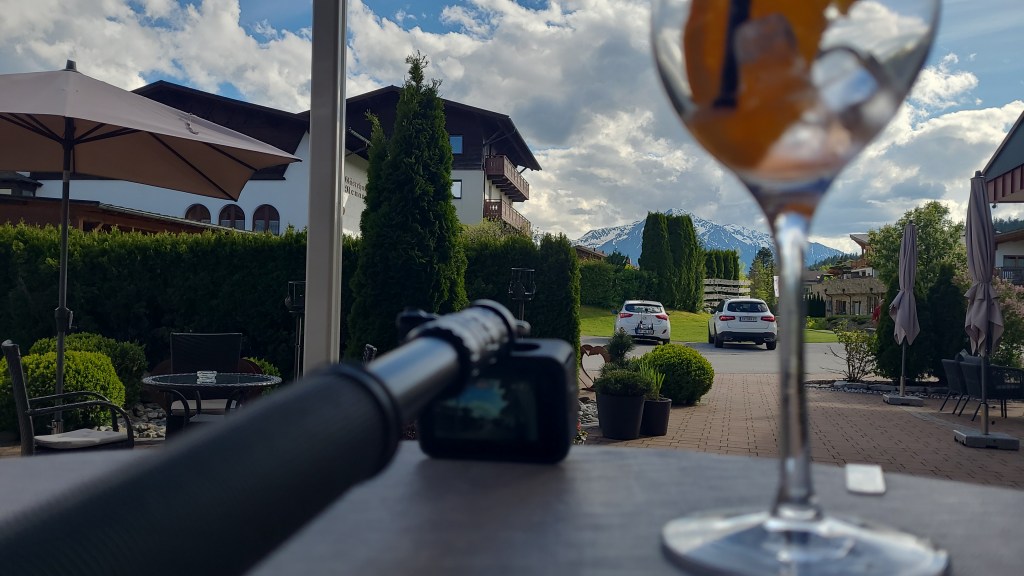 Ich verweilte einfach etwas und machte Zeitrafferaufnahmen der Wolken über den Bergen. Nebenbei verdunstete immer wieder ein Glas Aperol…