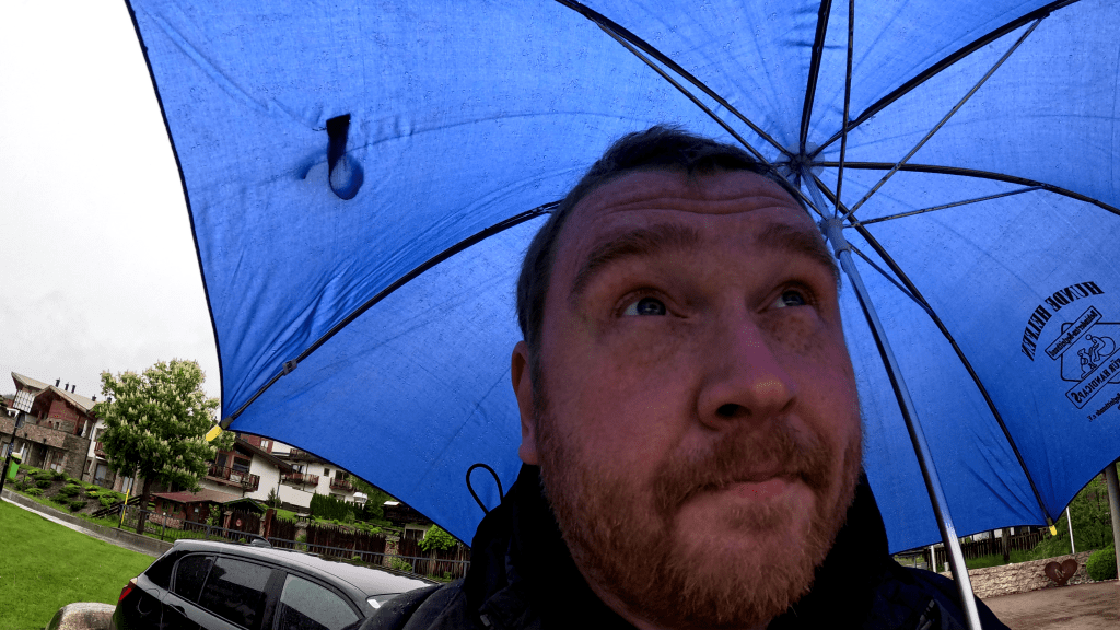 Vorhin dachte ich, ich zieh mir die Regenjacke an und nehme mir einen Schirm und gehe ein paar Snacks für die morgige Heimreise einkaufen. Am Ende hatte ich Snacks, einen kaputten Regenschirm und war gut durchnässt. An Wanderungen oder sonstige Aktivitäten draußen. muss ich dann also gar nicht erst denken.