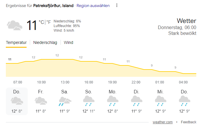 Das Wetter. In Island hat der Wetterbericht einen Trend dazu, sich wie Glücksspiel anzufühlen. Im Juni zog zwischendurch mal ein Blizzard über das Land. Aktuell regnet es… seit Wochen… und wenn ich mir den aktuellen Wetterbericht anschaue… es wird nicht besser: