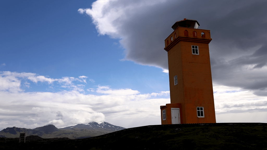 Gestärkt ging es für uns weiter in Richtung eines Leuchtturms. Doch davor kam ein Strand mit dem wunderschönen Namen Skarðsvík. Vor Ort liest man dazu, dass hier in den 1960igern Gräber von Vikingern gefunden wurden. Und wisst ihr, was die Isländer damit gemacht haben? Richtig – sie haben sie in ein Museum gebracht… und anschließend eine Picknick-Gelegenheit dort aufgebaut. Was man halt so macht. Doch für Isländer ist dieser Strand tatsächlich etwas besonderes. Denn in Island sind die meisten Strände durch das Lavagestein schwarz oder zumindest sehr dunkel. Dieser Strand dagegen ist eher golden.