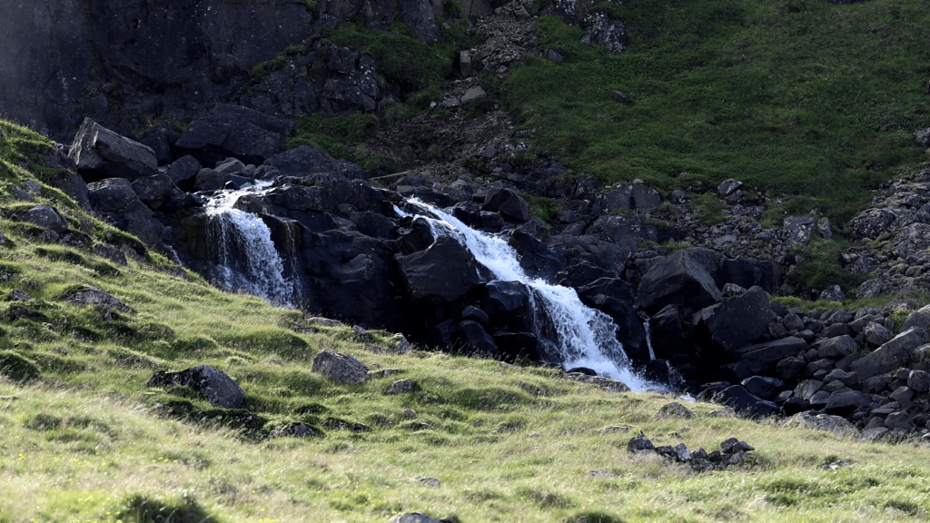 Der guten Laune, dem guten Plan und dem gutem Gefühl hier zu sein, tat das aber auch keinen Abbruch. Wir wanderten weiter entlang der Küste. Dabei spazierten wir durch Gräser und überquerten noch den ein oder anderen Bach. Wir sahen irgendwann auch, woher eigentlich die ganzen Bäche kamen.