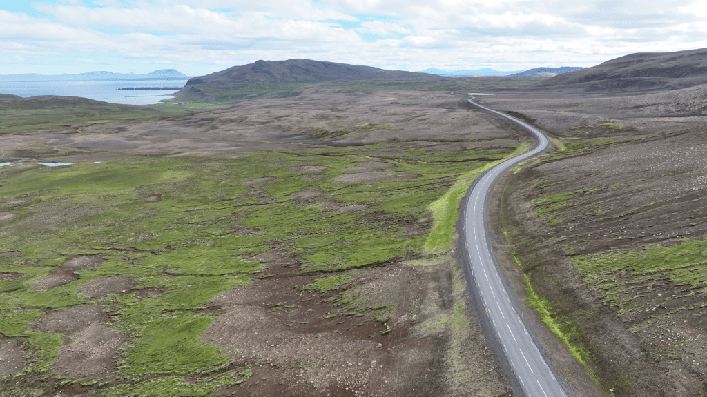 Mit einer leichten Verzögerung von einem halben Tag, ging es dann nun doch auf den Weg in die Ostfjorde. Wir hielten aus Prinzip aber auch noch mal an dem Rastplatz, wo vorhin das Unglück mit dem Finger passiert ist. Damit ihr eine Idee kriegt, was wir da auf Foto bannen wollten, habe ich meine Drohne in die Luft gejagt und es mal geknipst.