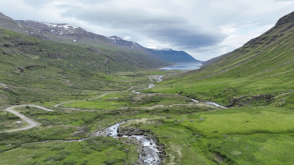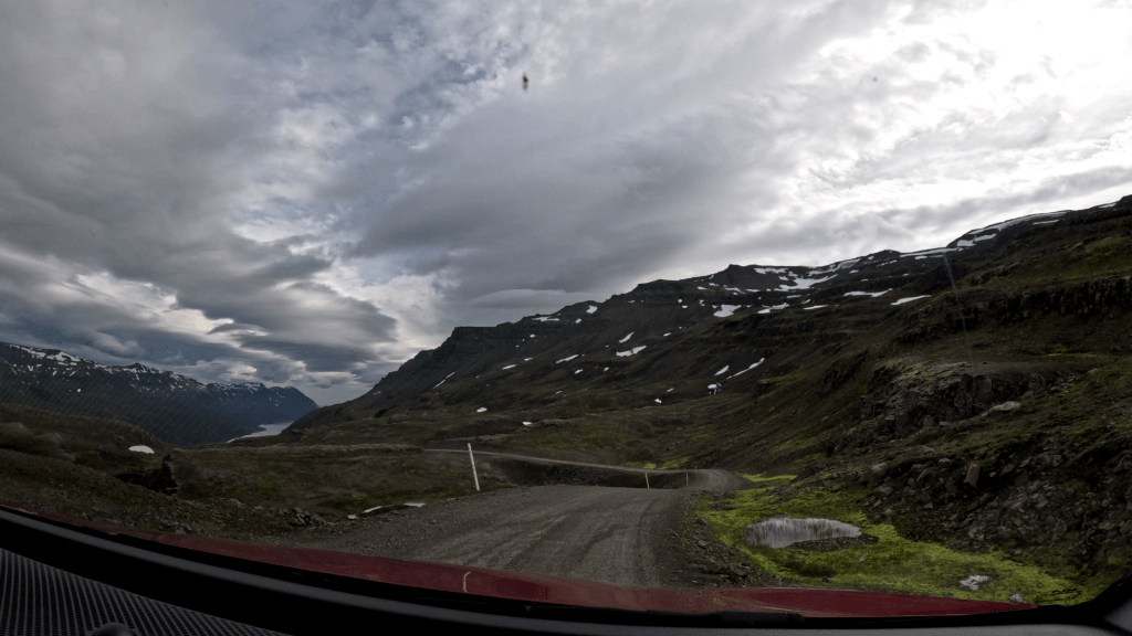 Aber weiter. Man darf sich das Gespräch zur heutigen Tagesplanung etwa so vorstellen. Meine Frau: „Ich möchte zum Hengifoss“. Ich: „Ich möchte zum Mjóifjörður“. Entsprechend sind wir also weiter zum Mjóifjörður. Etwas irritiert waren wir, weil Google Maps – sonst eigentlich recht zuverlässig in Island – auf einmal der Meinung war, dass es in diesen Fjord keine befahrbaren Wege mehr gibt.