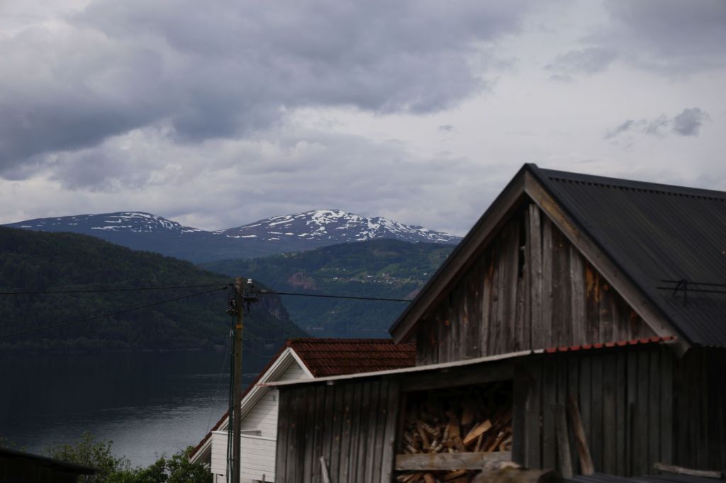 Eine hölzerne Scheune, symbolisch für das urtümliche Norwegen. Dahinter ein hübsches Wohnhaus als Kontrast dazu, für die Moderne. Dahinter folgen ein paar grüne Hügel und das tiefdunkle Wasser als unauffälliger aber deutlicher Bezug zur Natur. Über all dem thront ein schroffes, schneebedecktes Gebirge mit einem stürmischen Himmel. Es fasst Norwegen in Full HD zusammen. Ich habe keine Ahnung von Fotografie. Insofern vermag ich am Ende kein professionell Urteil zu fällen. Aber wenn ich mal aus einem fahrendem Bus heraus solche Bildkompositionen sehe und festhalten kann, wird das ein großer Tag für mich. Bis dahin leben wir alle sehr gut damit, dass meine Frau das für mich macht.