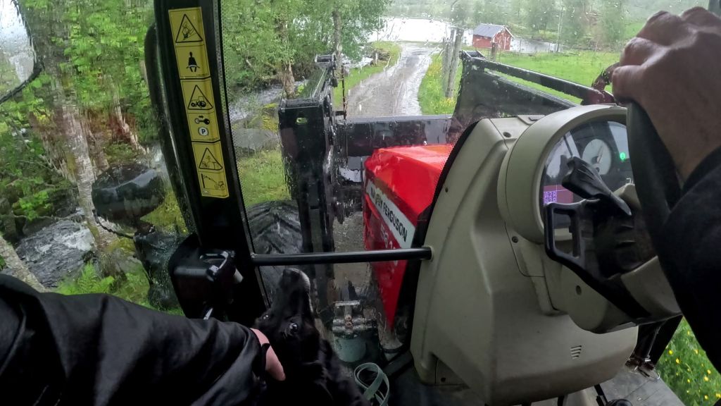 Und während die Glücksgefühle unsere Sinne durchströmten, tat der Regen das Gleiche mit unseren Körpern. Es wurde tatsächlich noch schlimmer. Unser Gastgeber führte uns kurzer Hand in einen Unterstand und erklärte dann, dass es bei diesem starken Regen keinen Wert hat, zu den Hirschen zu gehen. Er besprach sich kurz mit einem Helfer. Anschließend fuhren zwei Kinder schon mal mit besagtem Helfer davon. Unser Gastgeber stieg in einen Traktor (in dem bereits ein Hund saß) und meinte, er würde den Rest gleich mit einem Auto abholen. Dann fragte er, ob jemand schon im Traktor mit ihm mitkommen wolle. Da noch ein paar Kinder dastanden, habe ich erstmal nichts gesagt. Die Momente vergingen und nichts passierte. Ich hatte das Gefühl, dass er jeden Moment dann eben allein losfährt und… ehe ich mich versah, saß ich neben ihm im Traktor, streichelte einen Hund und war selbst etwas überrascht, wie unternehmungslustig ich spontan war.