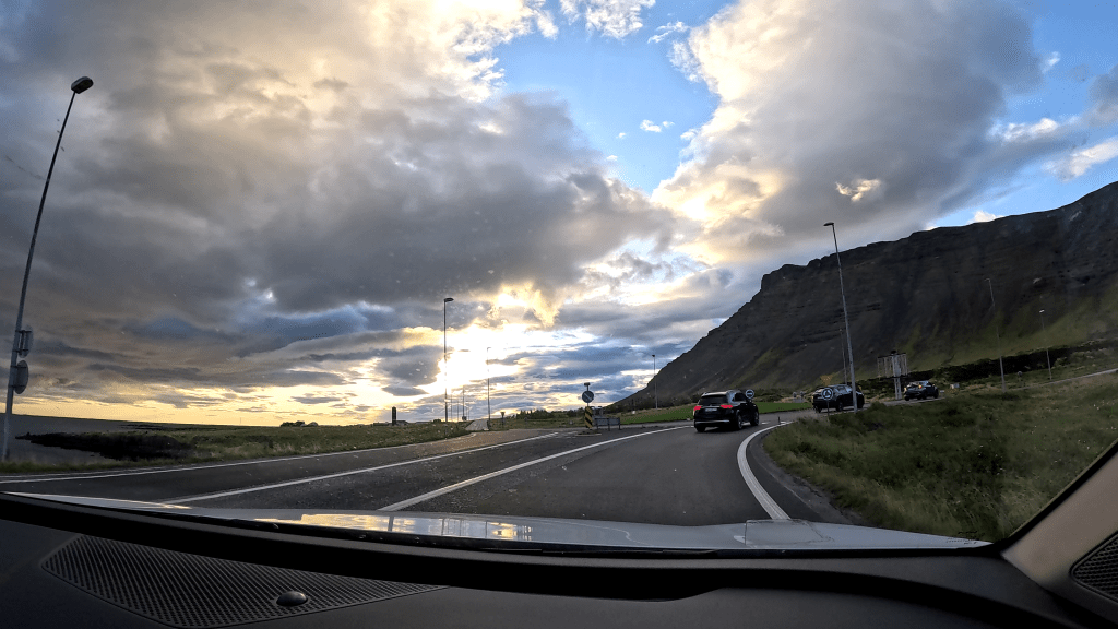 Einen kleinen Zwischenstopp zum Einkaufen legten wir noch ein. Ansonsten fuhren wir die guten 200km in einem Ritt durch. Man möchte ja schließlich doch irgendwann ankommen. Außerdem ist es so, dass in Island vielleicht im Sommer die Sonne nicht untergeht. Mitte September tut sie das aber sehr wohl und ich mag einfach nicht gern im Dunkeln Auto fahren.