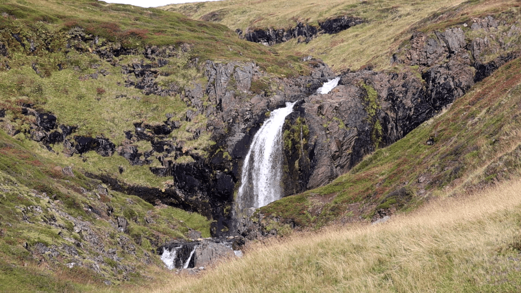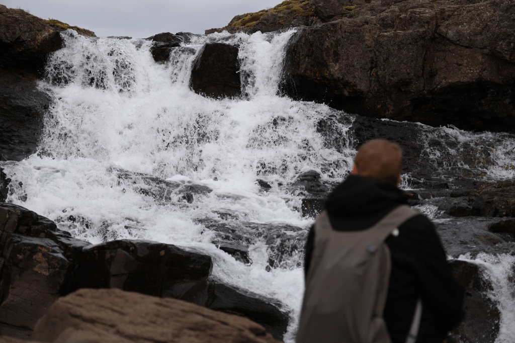 Unser nächste Stopp sollte dann der Nafnlausfoss werden. Genau genommen handelt es sich dabei um einen Wasserfall, der keinen Namen hat. Aber auch hier schlägt die Routine zu. Die Geschichte ist sehr ähnlich wie bei der Straße 54. Man hat irgendwann mal einen kleinen Punkt gefunden und seitdem ist man in jedem Urlaub wieder dort.