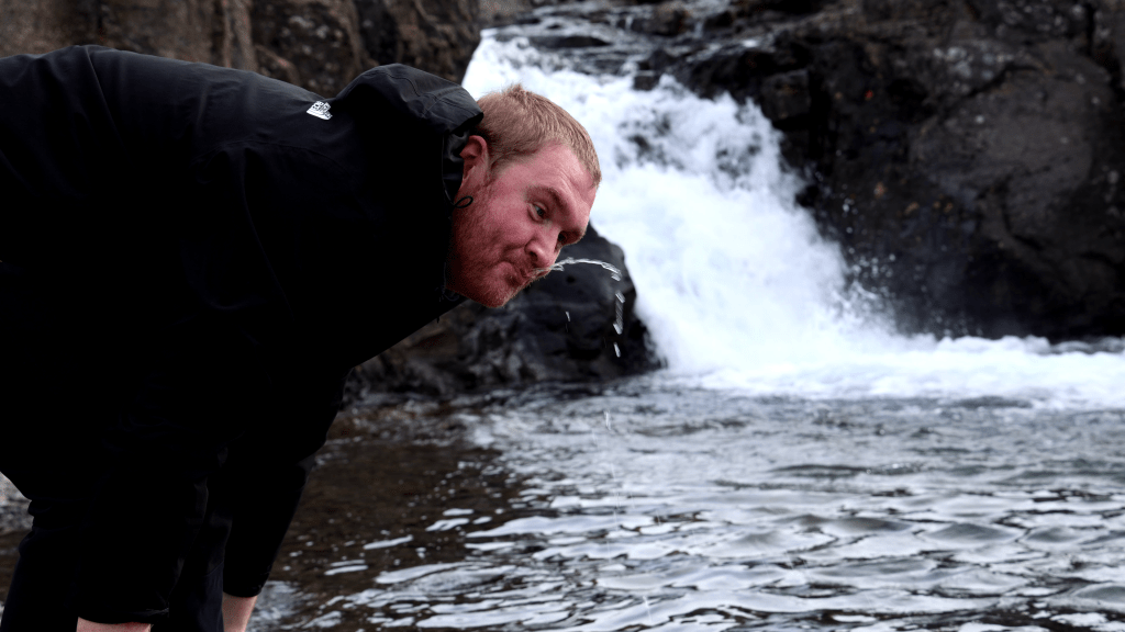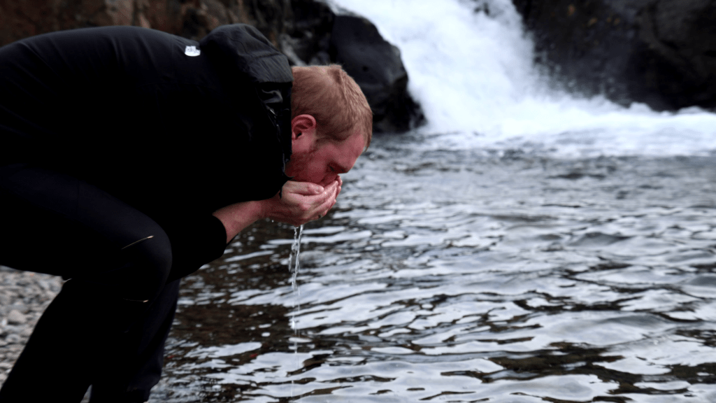 Ich nutzte die Gunst der Stunde dann auch gleich dafür, dass ich einen weiteren Punkt auf der Bucketliste abhakte. Nämlich den, aus einem wilden Gewässer zu trinken. Ich mein, viel abgeschiedener als hier kann man kaum stehen und die Chance, dass das Wasser hier vollkommen naturbelassen und sauber ist, ist wohl extrem hoch.