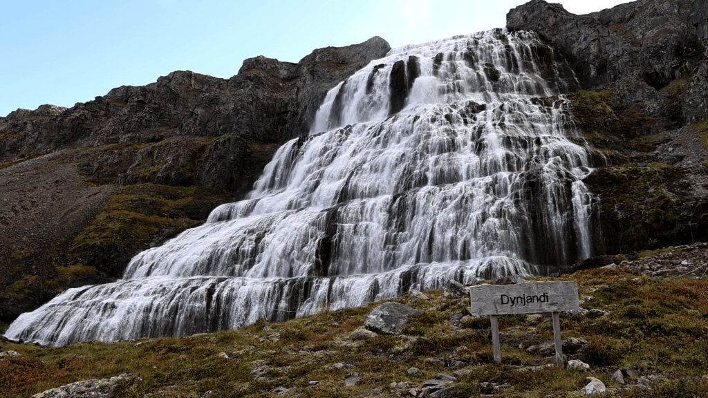 Und dann steht man vor ihm – dem großen Dynjandi. Er ist ohne Frage imposant. Ein riesiger Schleier aus Wasserläufen. Wenn man davor steht und ein Foto machen will und merkt, dass man ihn nie so richtig ganz aufs Bild kriegt, weiß man, dass er wirklich groß ist.