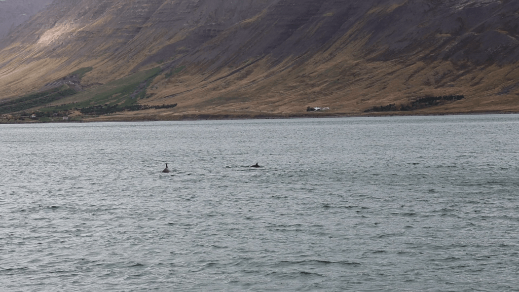 Wir glauben übrigens, dass es Schweinswale waren. Die sind hier wohl recht häufig zu sehen. Wir hatten auch die Chance 1-2x die Färbung der Tiere zu sehen und das passt ganz gut mit dem, was Google bei der Bildersuche zu Schweinswalen ausspuckt. Ganz genau wissen wir es aber natürlich nicht. Theoretisch können es laut dem Internet auch Zwergwale oder junge Finnwale gewesen sein. So oder so – es war toll sie zu sehen.