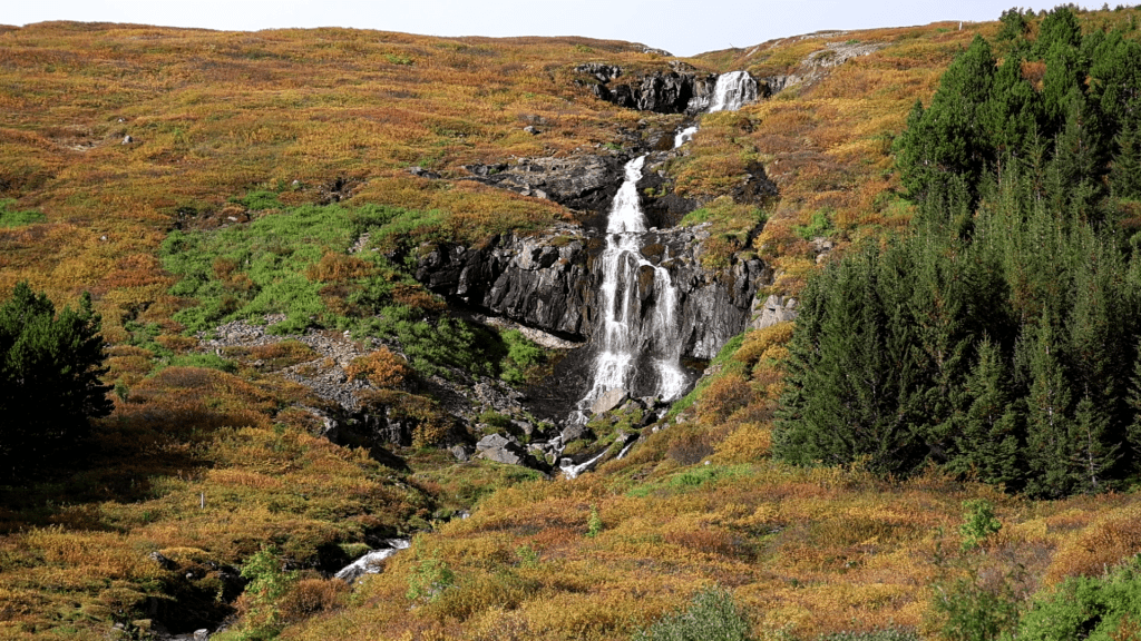 Der Wasserfall war auch bildschön in viele Herbstfarben eingebettet. Hier gibt es, für Island vielleicht sogar noch immer untypisch, relativ viele kleine Bäume.