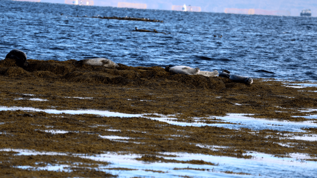 Der erste Stopp war bei einem Aussichtspunkt, bei dem Rezensionen sagten, dass man wohl recht häufig Robben antrifft. Viel mehr als das braucht es für uns eigentlich gar nicht, um uns zum Anhalten zu bewegen. Wir fuhren auf einen kleinen Parkplatz und sahen erstmal nichts. Dann entdeckten wir einen Fußweg, der ein Stück abseits des Parkplatz führte und siehe da: Man kam zu einem Aussichtspunkt, von dem man tatsächlich Robben sehen konnte.