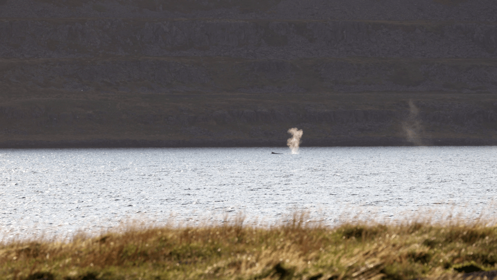 Und so sitzt man da, mit seinem Brötchen und der kalten Wurst, schaut aus dem Fenster und natürlich kommen dann gleich wieder Wale vorbei. Island ist ein Wahnsinn.